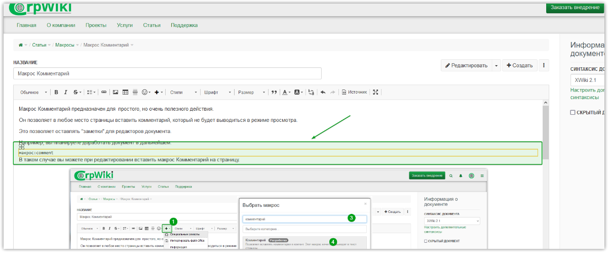 Макрос Комментарий предназначен для простого, но очень полезного действия.